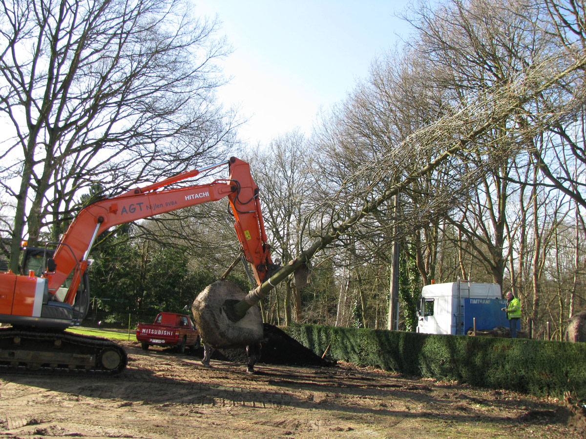 Het planten van buitenmaatste bomen en solitairs in diverse maten is één van onze specialiteiten.